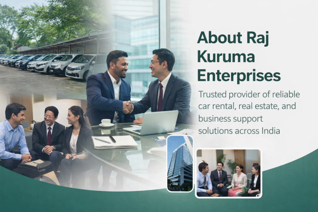 Raj Kuruma Enterprises Pvt. Ltd. is a trusted service provider offering professional car rental, real estate, and business setup solutions across India. With years of experience and a strong nationwide network, we deliver reliable, safe, and efficient services tailored to the needs of corporate and international clients.